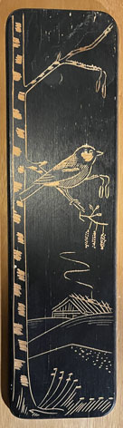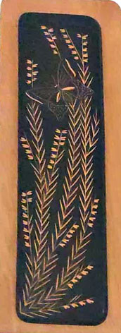 med bast flätad runt ramen. På bildhuggarspråk kallas verktyget som skar