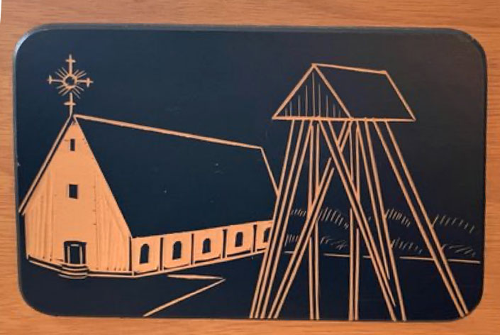 plywood. Tavlorna fanns även med målade detaljer. Även bakskivan fanns
