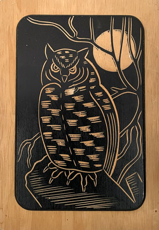 tavlor med hjälp av svartmålad björkplywood som var fäst på en större