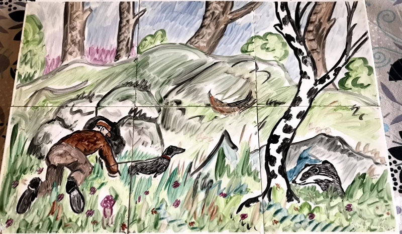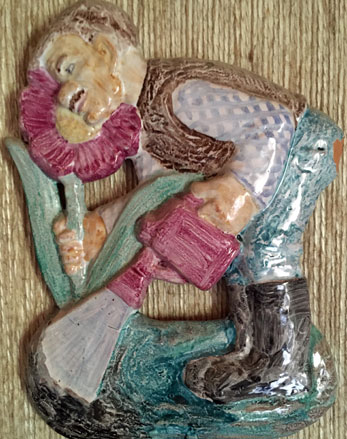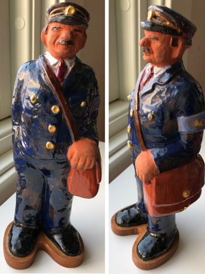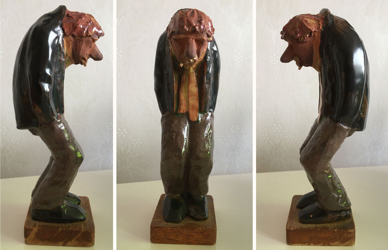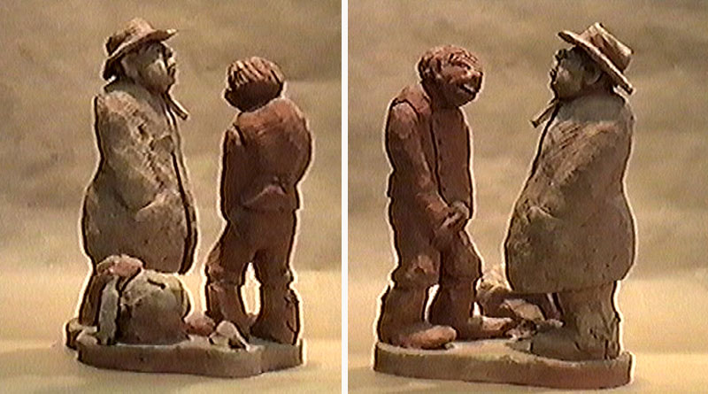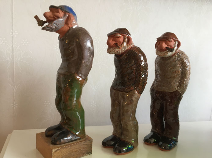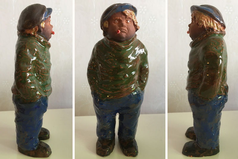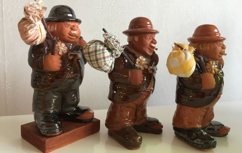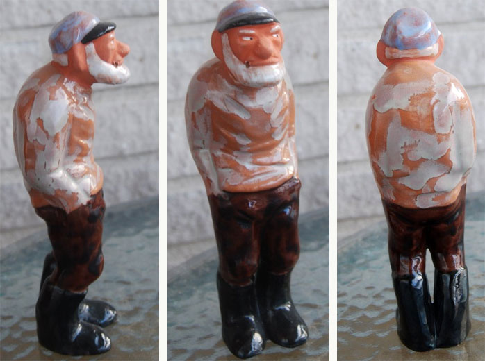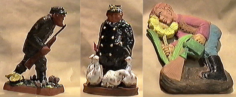 Jägare, 25 x 16 cm. Brötar-Emil 24 x 17 cm. Dam med