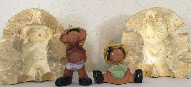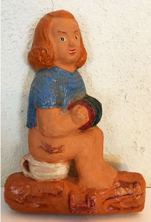 På pottan, 17 x 12 cm. Mor och barn 18 x 6 cm