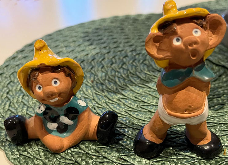 Par i miniatyr, 6 x 4,5 cm. Troll, 6 x 5 cm