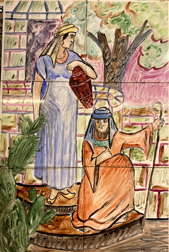 Dam i röd dress, 27 x 14 cm & Törstig pojke, 16 x 15