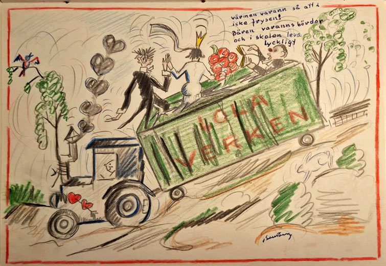 Bengt Andersson i Slättäng fick detta konstverk när han gifte sig 15 aug