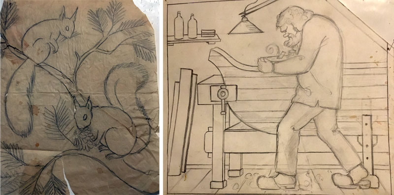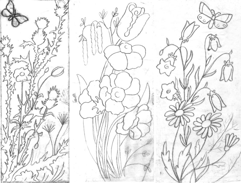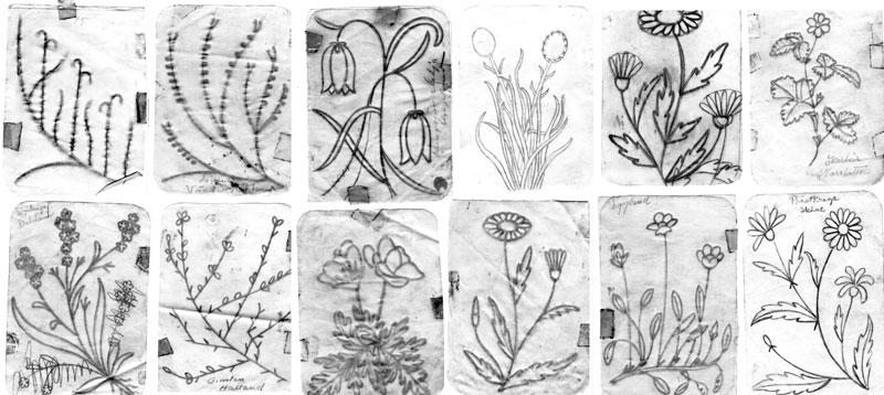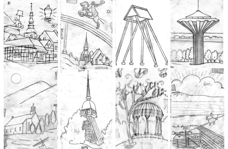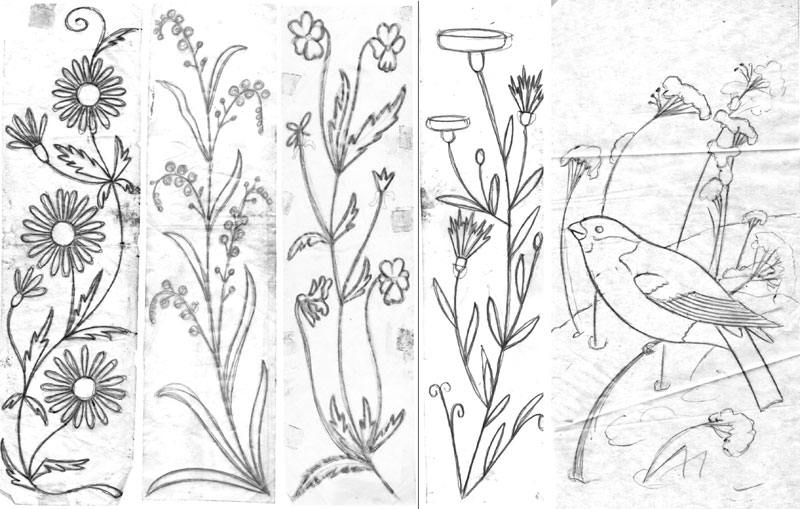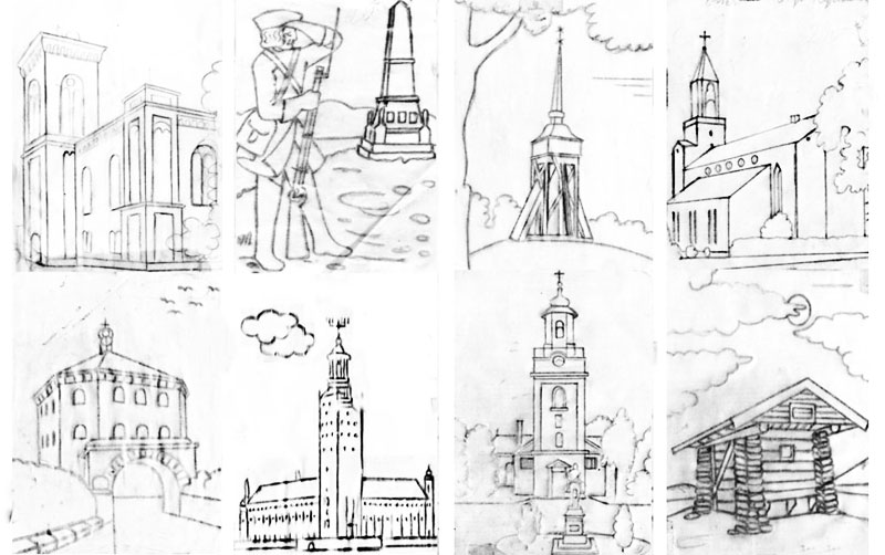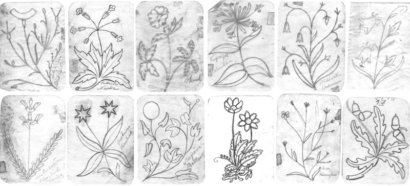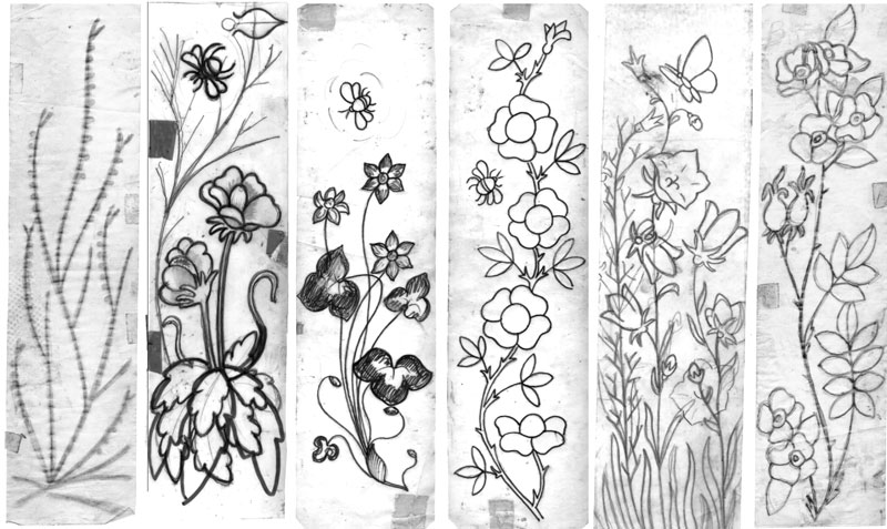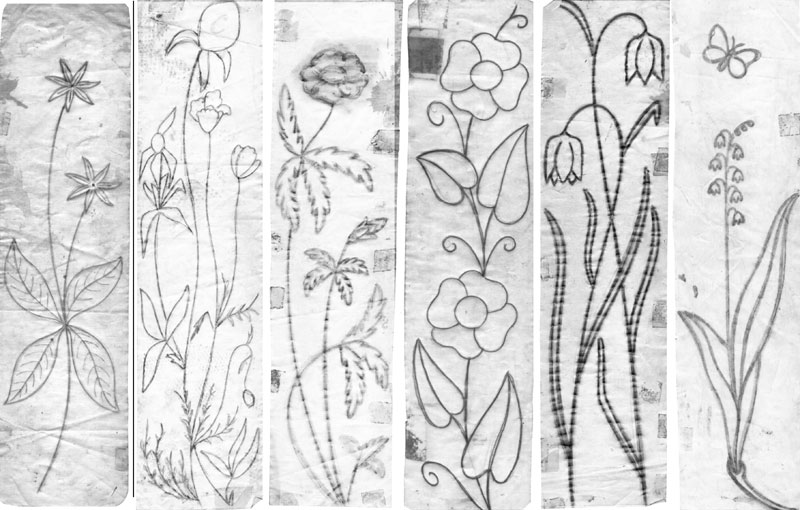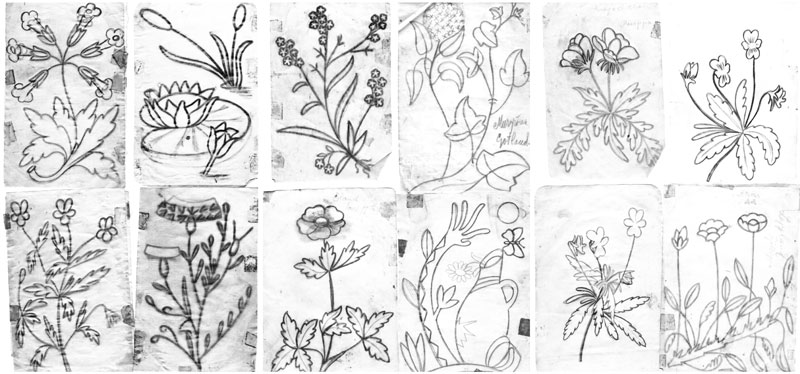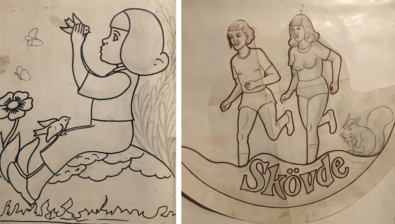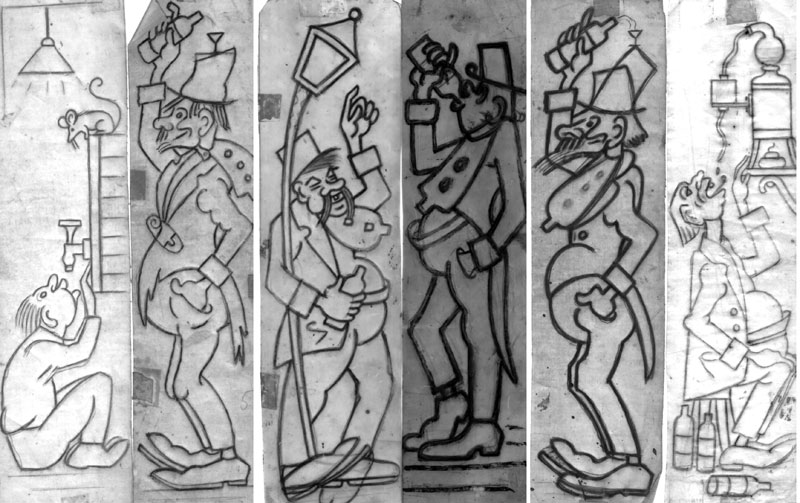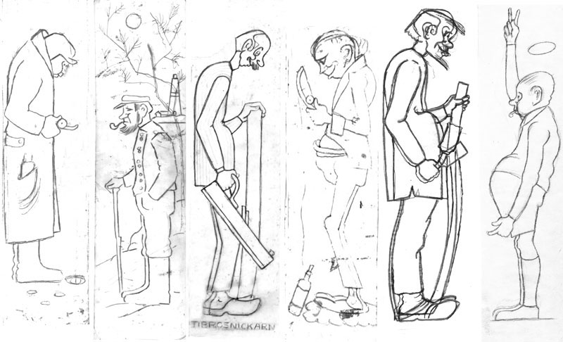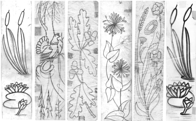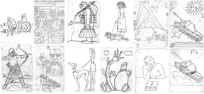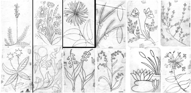 Mallar Har hittat dessa mallar och dom flesta kom att bli trätavlor i relief (270 st) eller svarta-tavlor (450 st). Vissa mallar är mer lik fristående teckningar.
