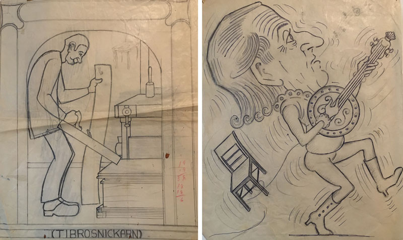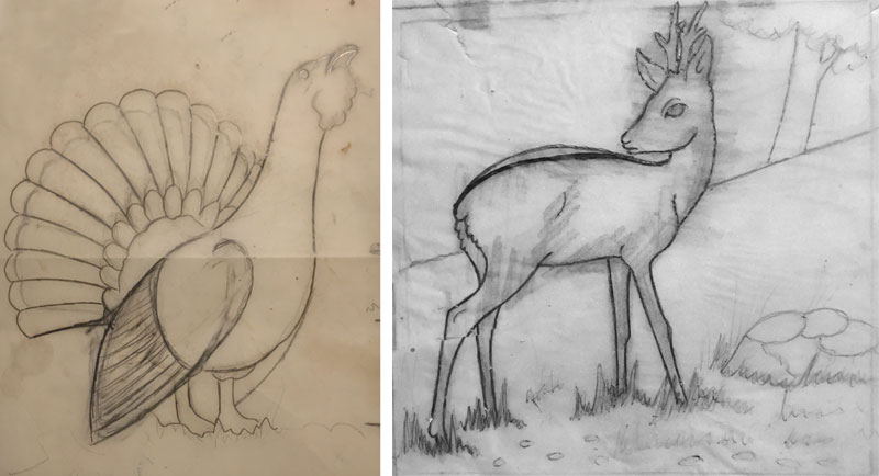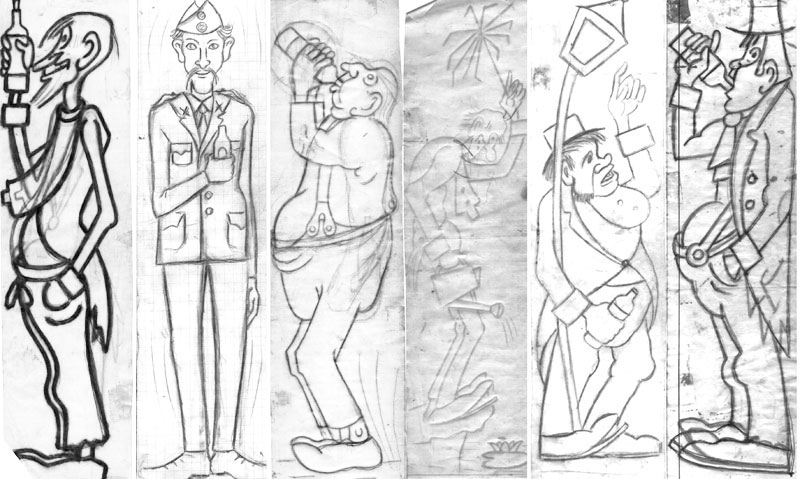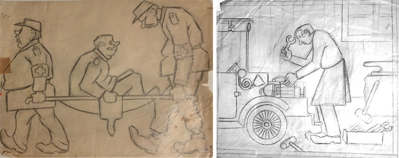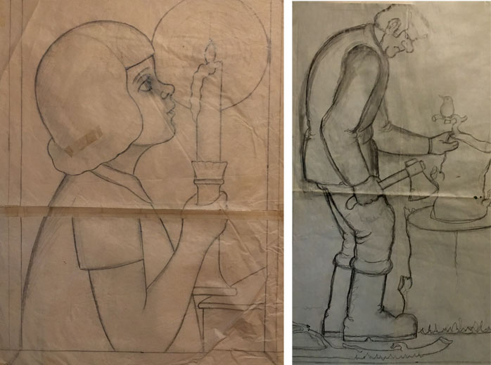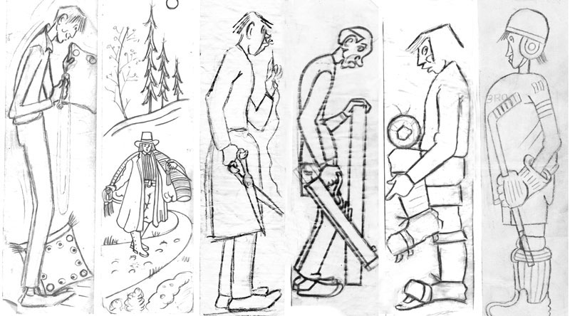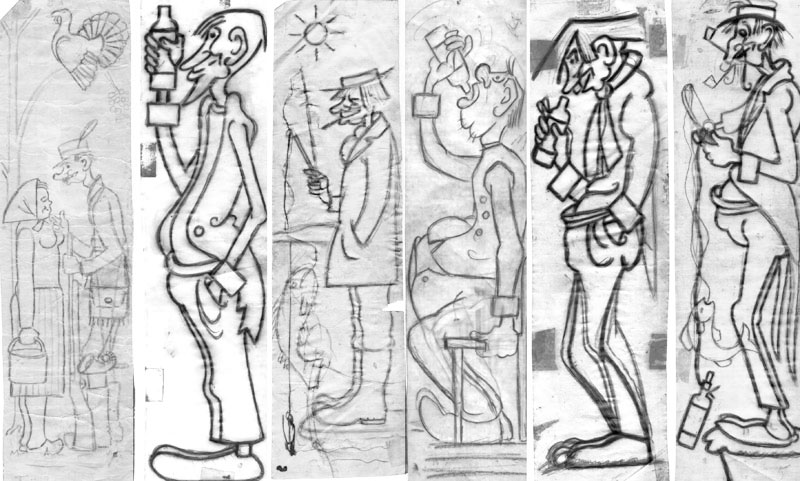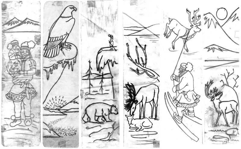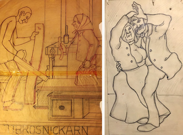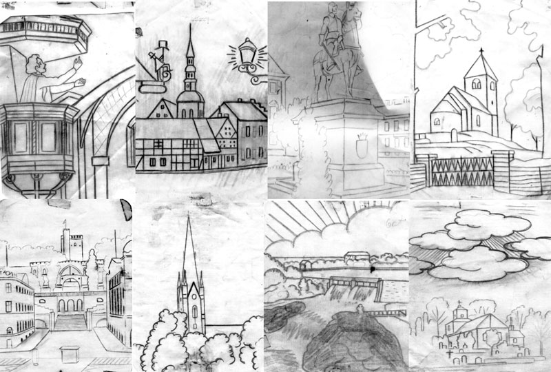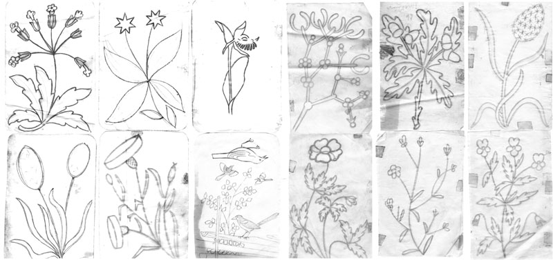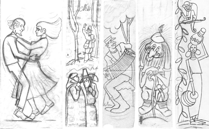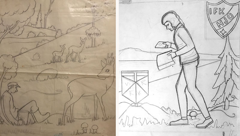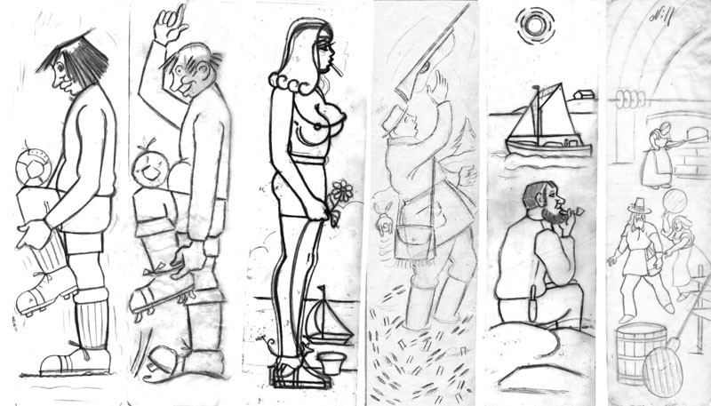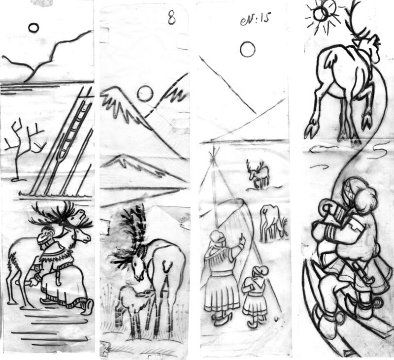 Mallar Har hittat dessa mallar och dom flesta kom att bli trätavlor i relief (270 st) eller svarta-tavlor (450 st). Vissa mallar är mer lik fristående teckningar.