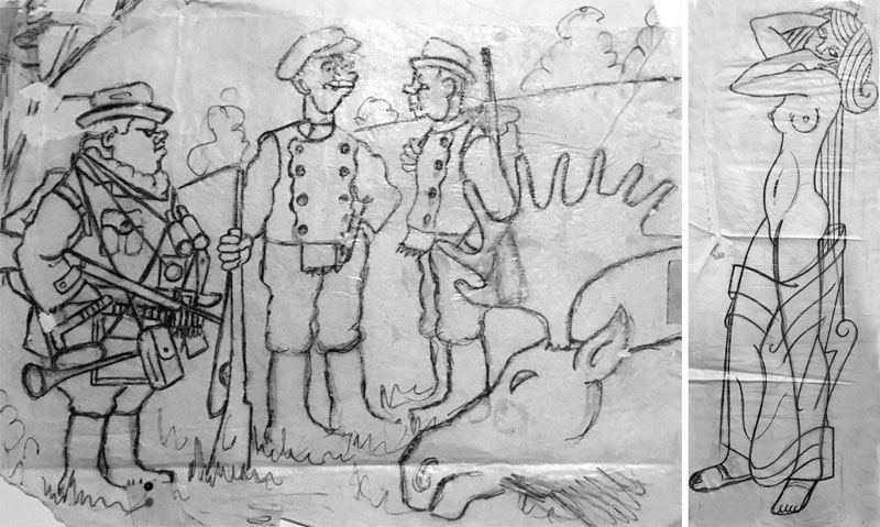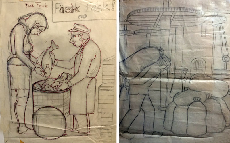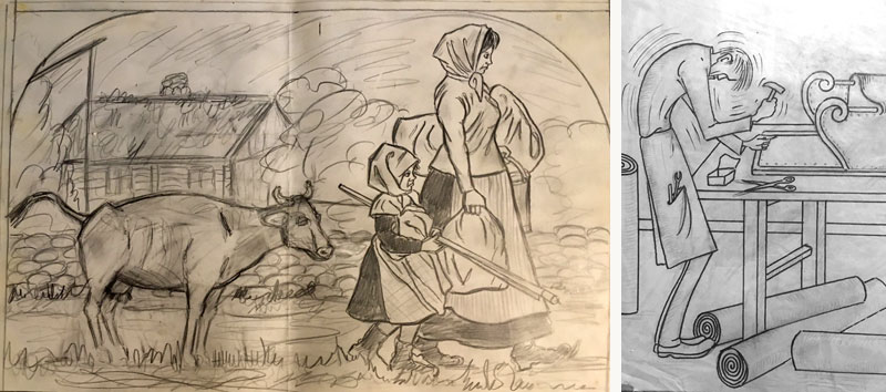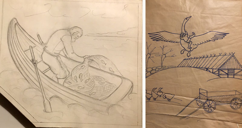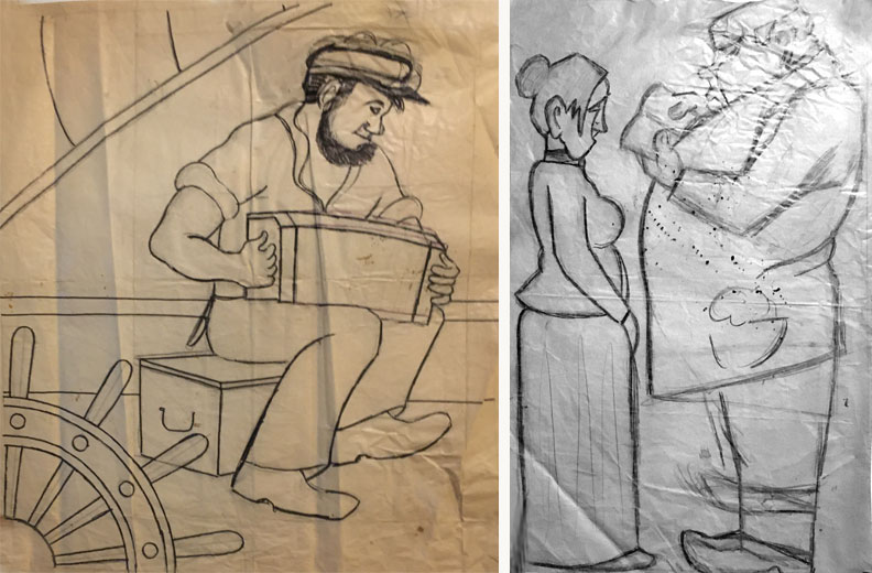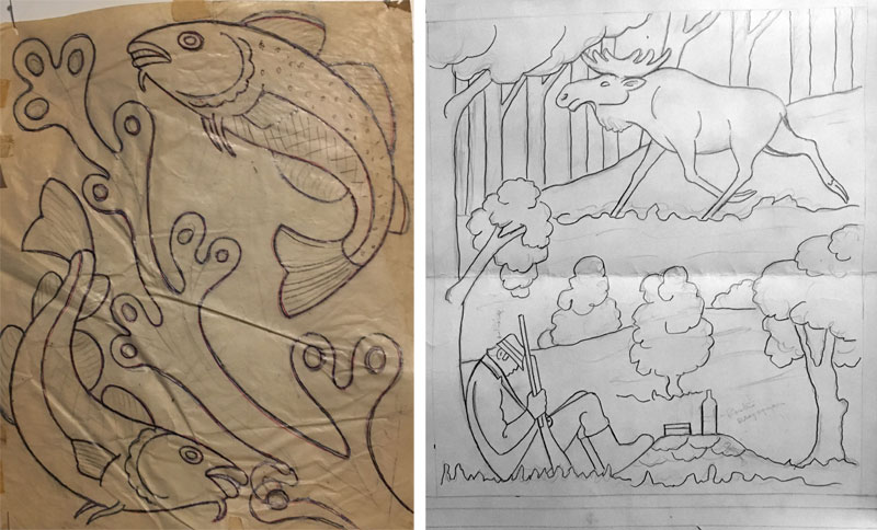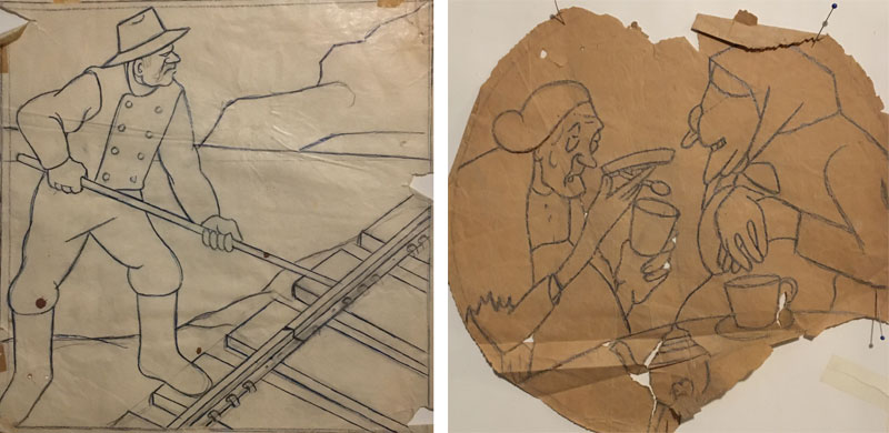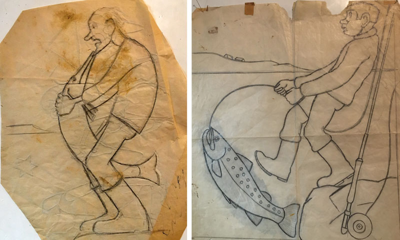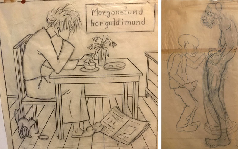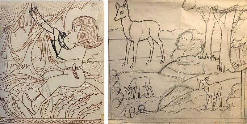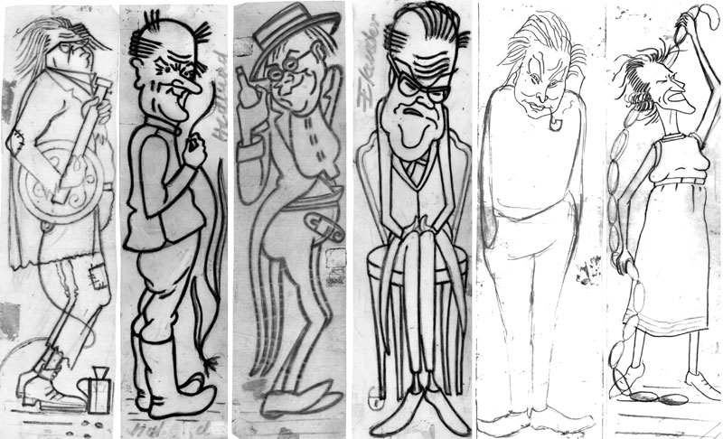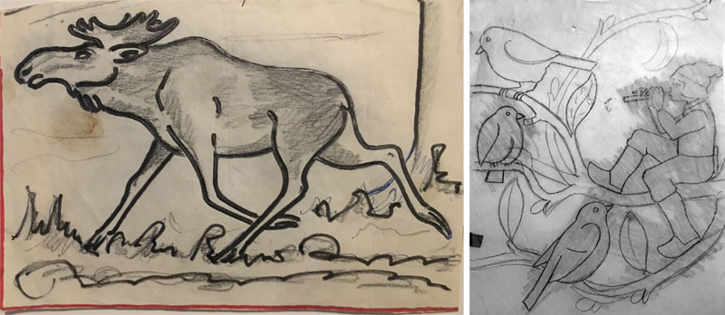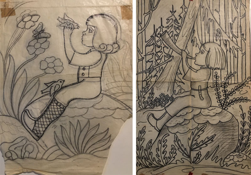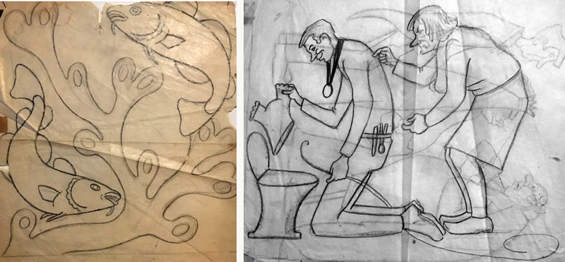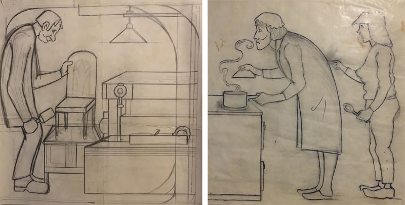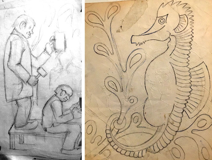 Mallar Har hittat dessa mallar och dom flesta kom att bli trätavlor i relief (270 st) eller svarta-tavlor (450 st). Vissa mallar är mer lik fristående teckningar.