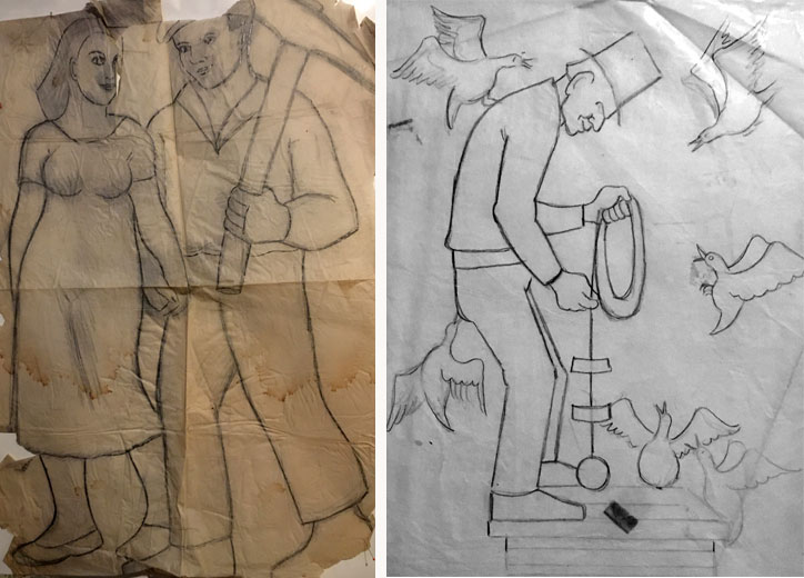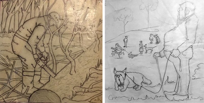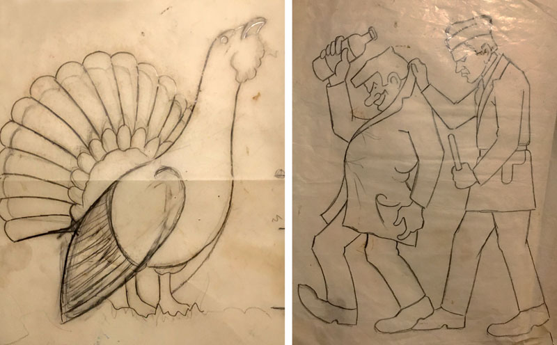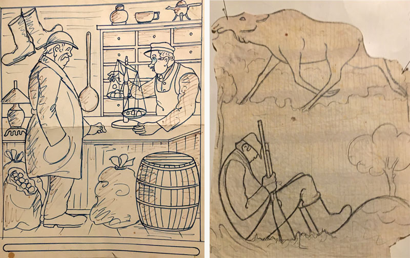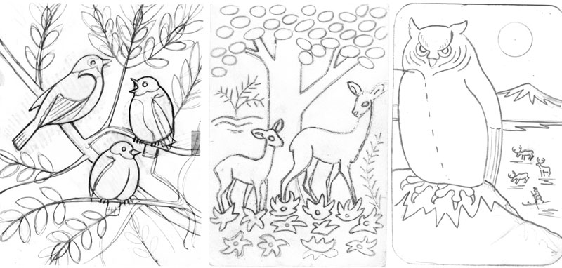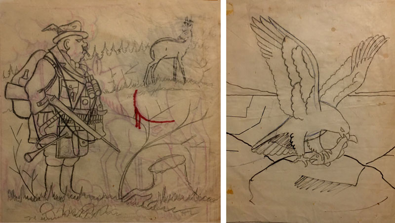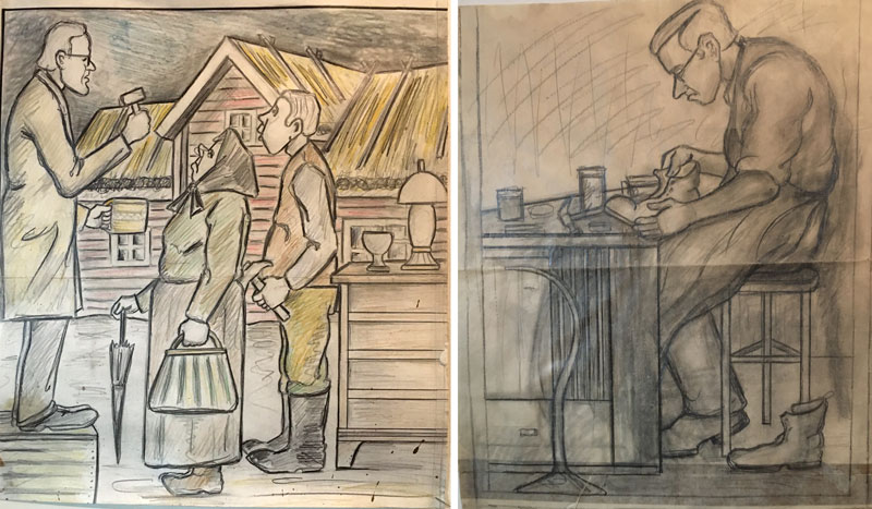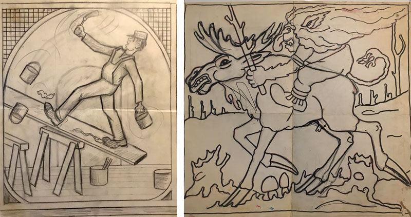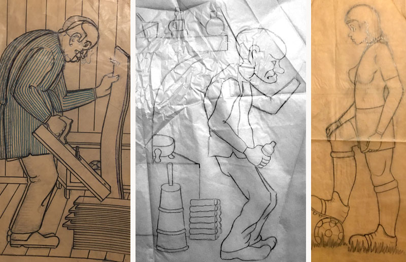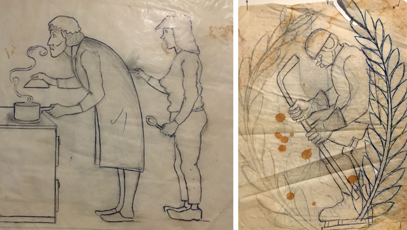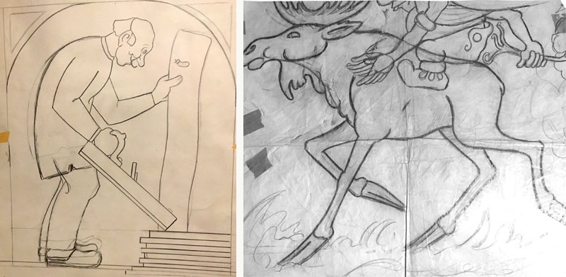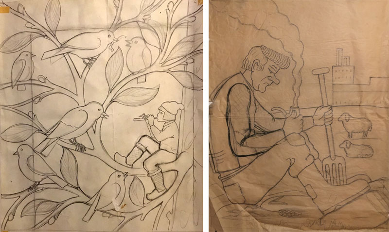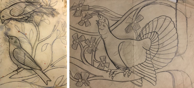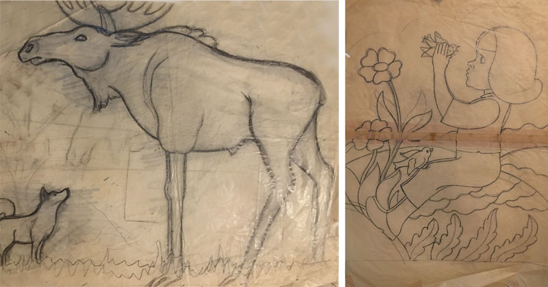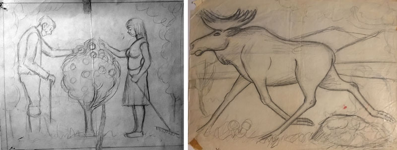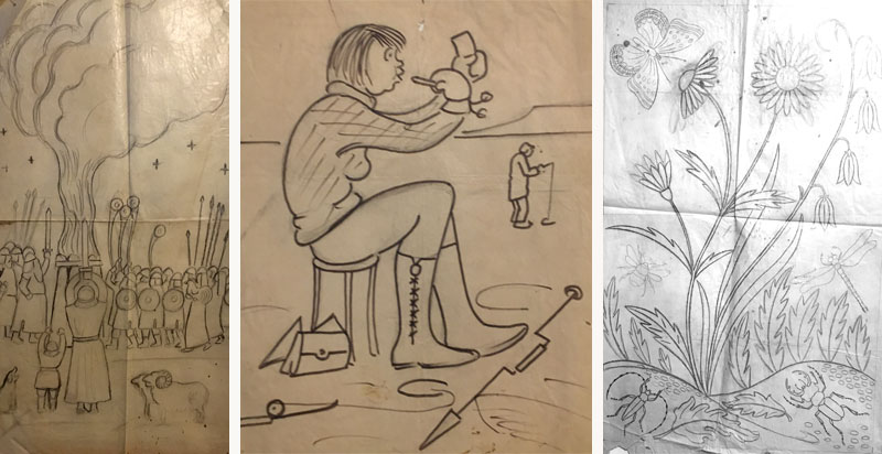 Mallar Har hittat dessa mallar och dom flesta kom att bli trätavlor i relief (270 st) eller svarta-tavlor (450 st). Vissa mallar är mer lik fristående teckningar.