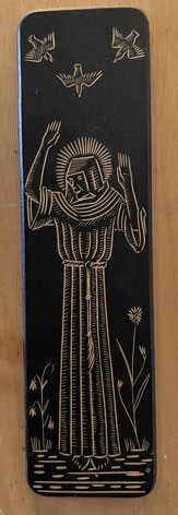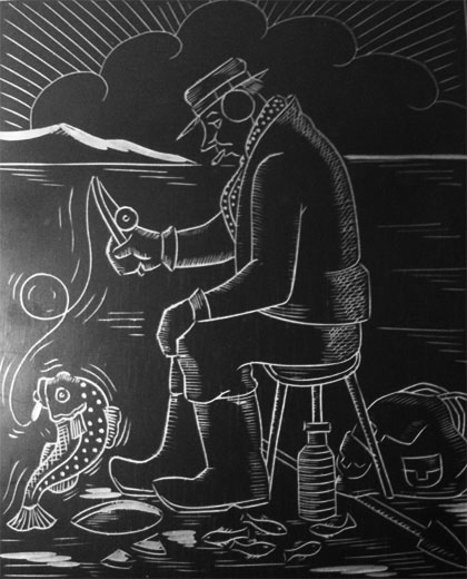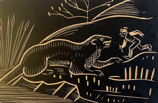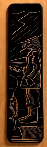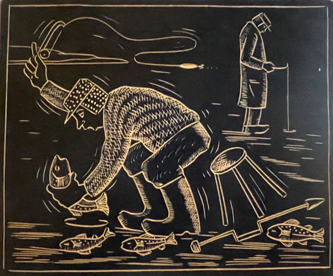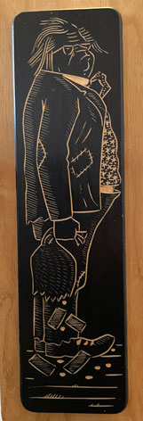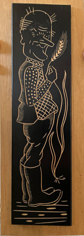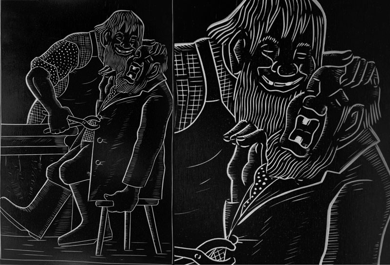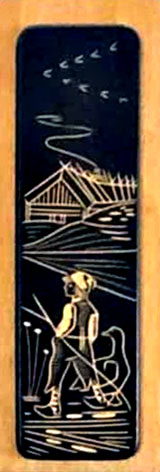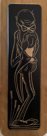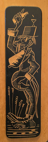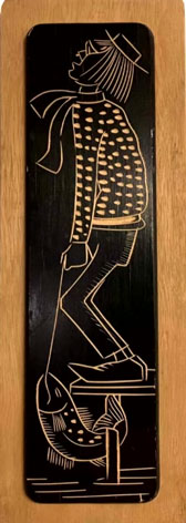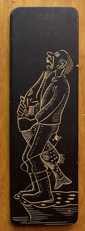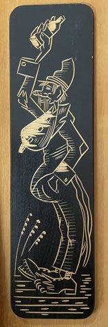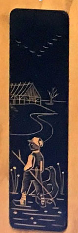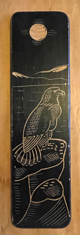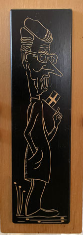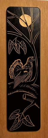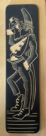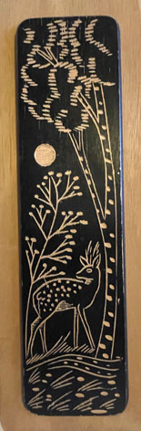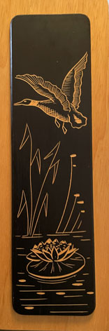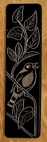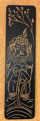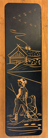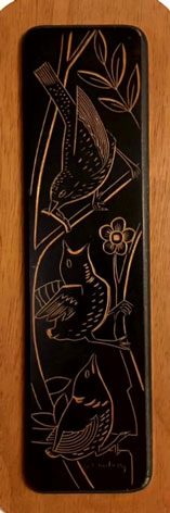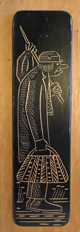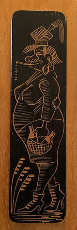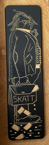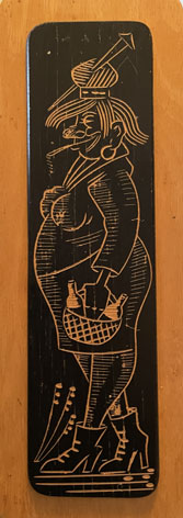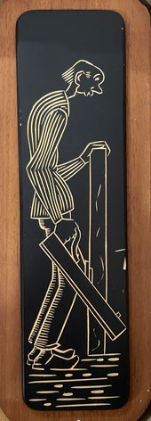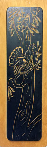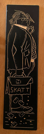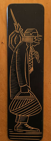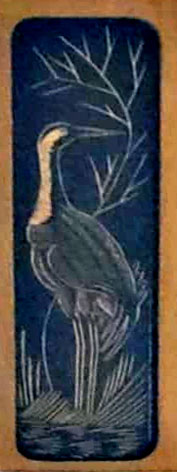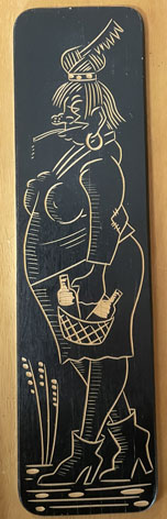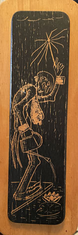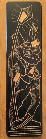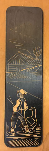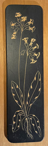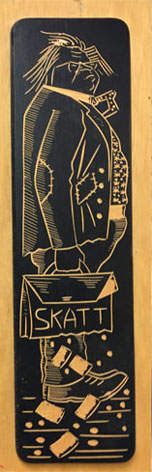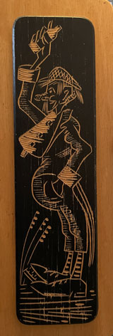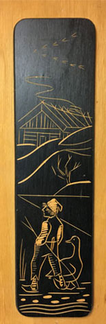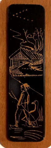 med bast flätad runt ramen. På bildhuggarspråk kallas verktyget som skar