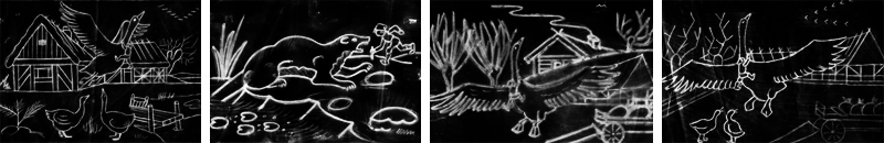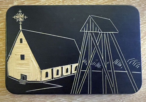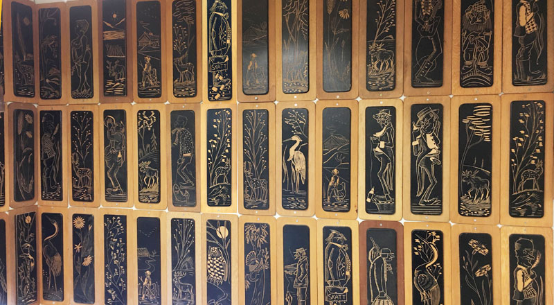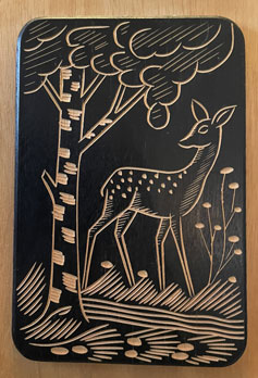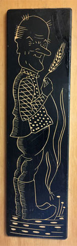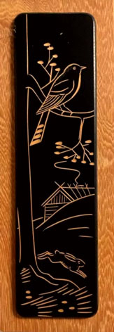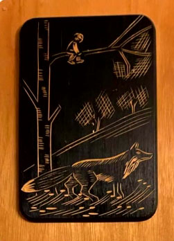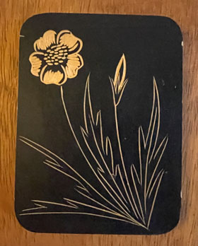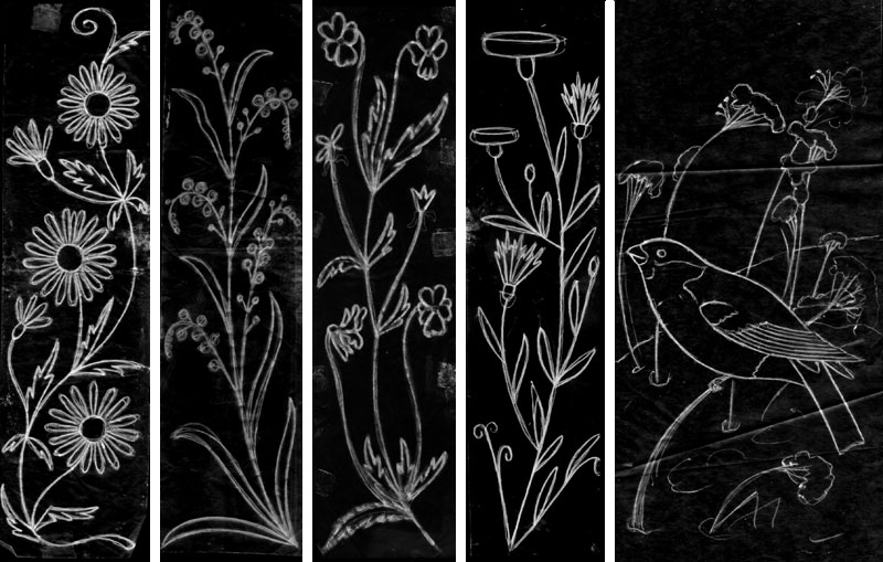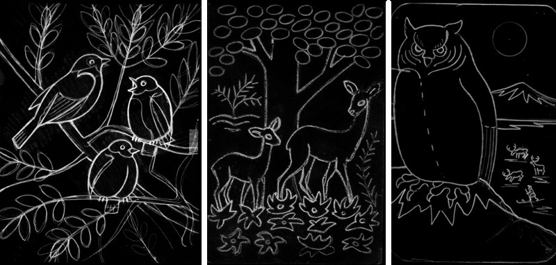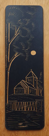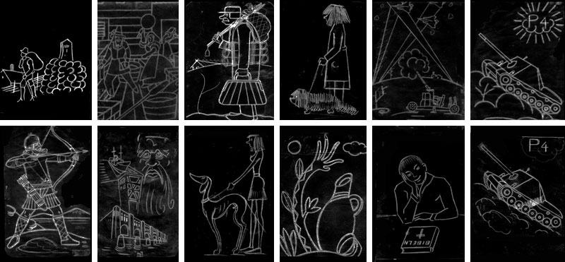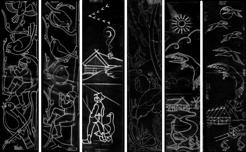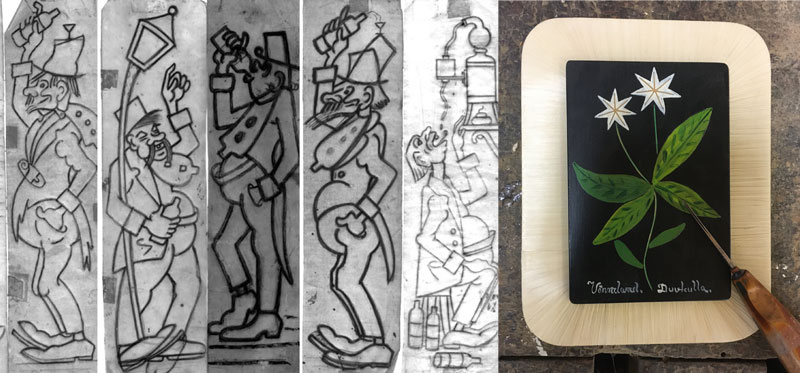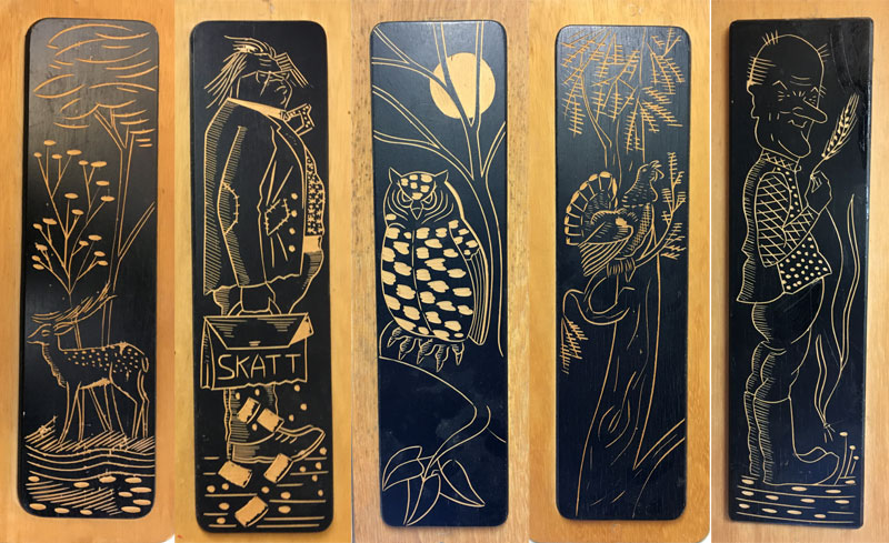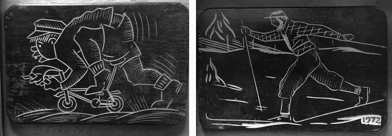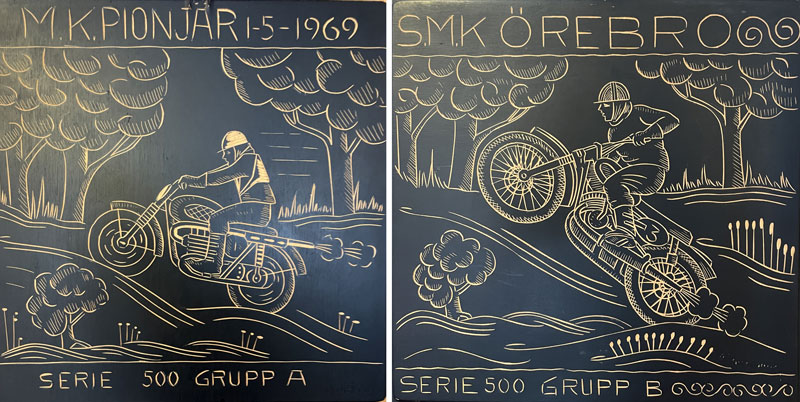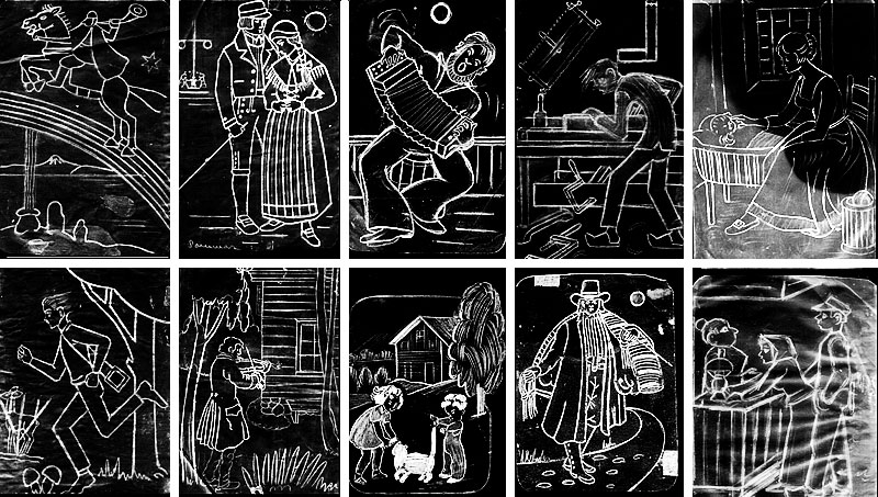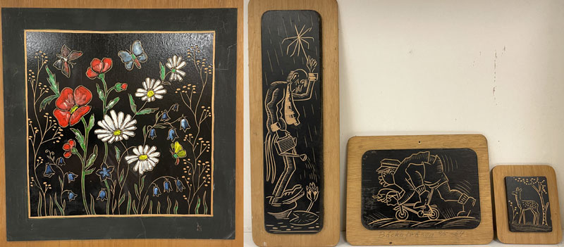 plywood. Tavlorna fanns även med målade detaljer. Även bakskivan fanns