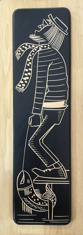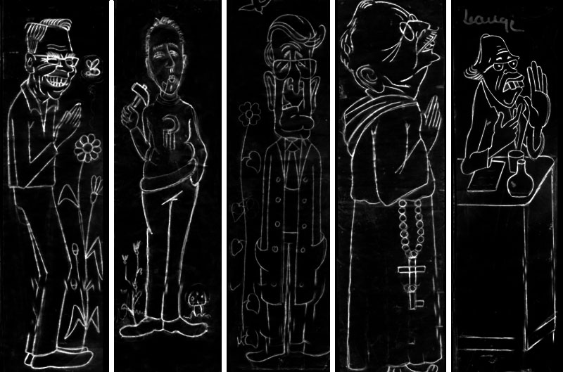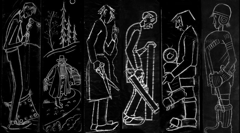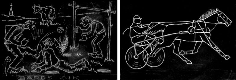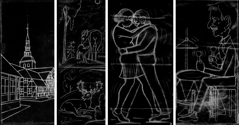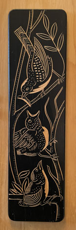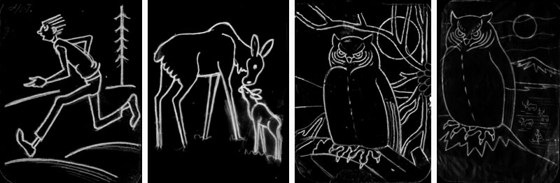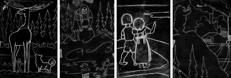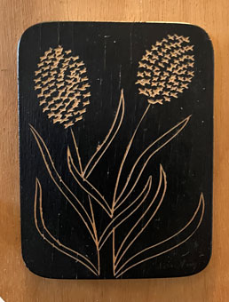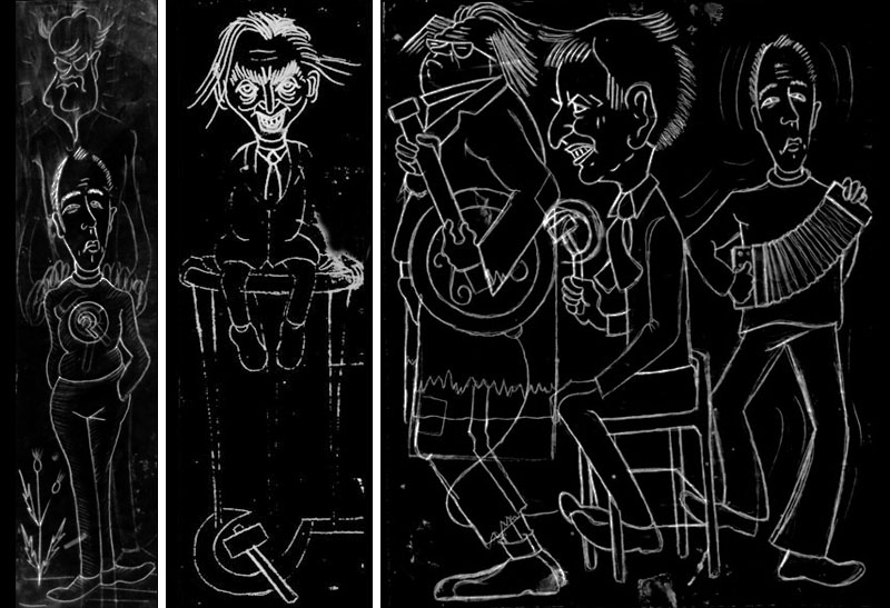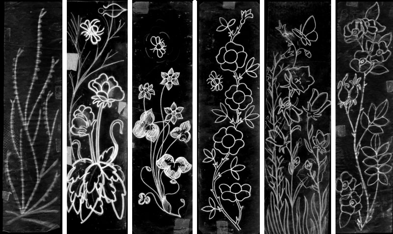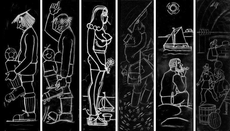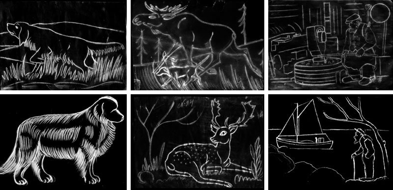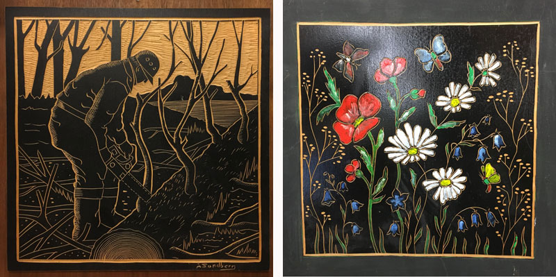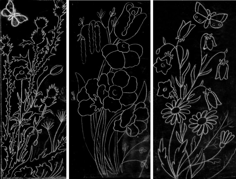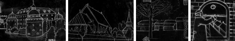 tavlor med hjälp av svartmålad björkplywood som var fäst på en större