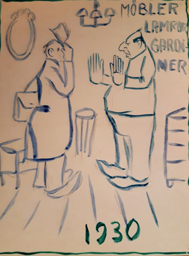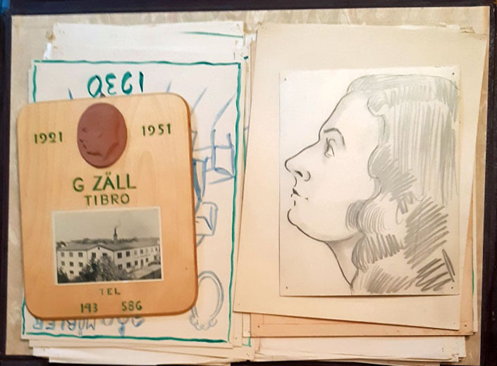 Mapp med teckningar på anställda vid Zälls möbelfabrik 30-års jubileum