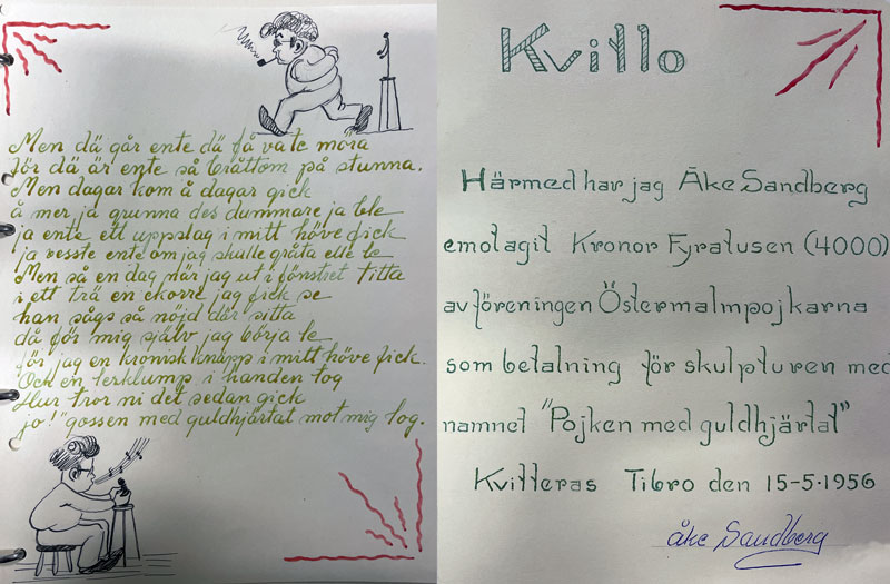 Omslaget visar "Pojken med guldhjärtat", statyn, som föreningen