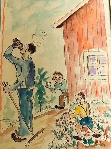 Akvarellen till Uno Åbergs 40 årsdag 1961.